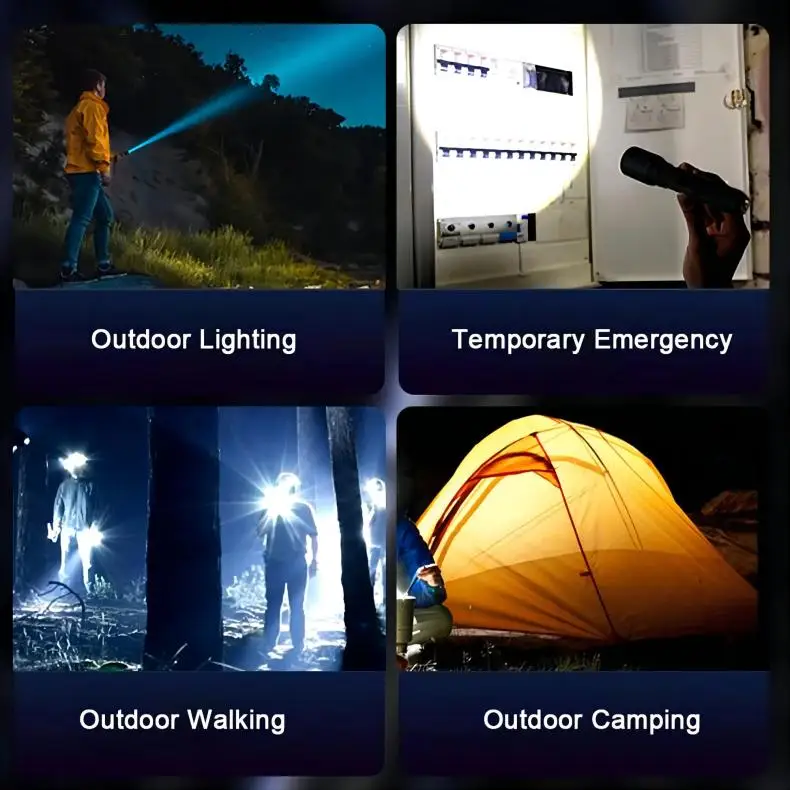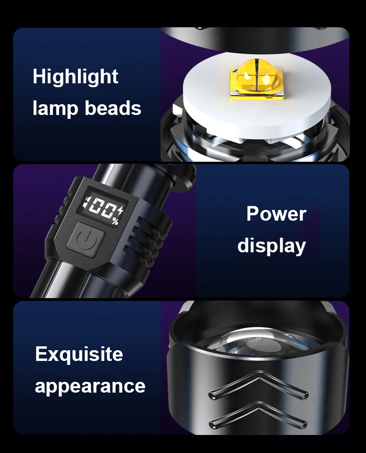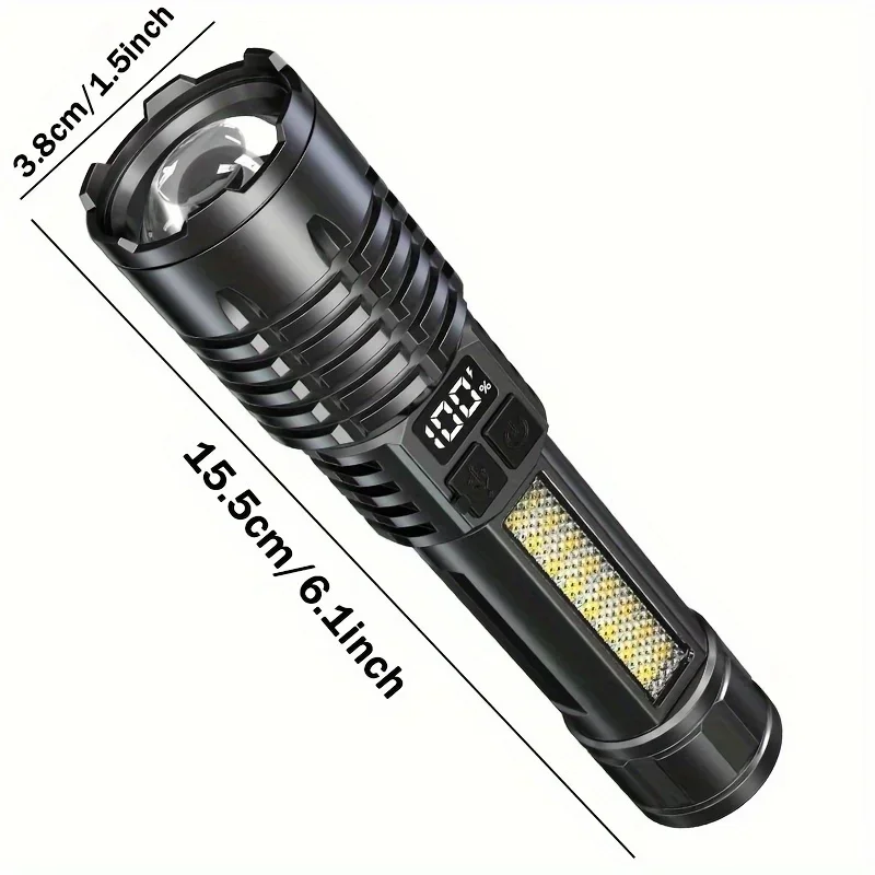 Lanterna com zoom com indicador de bateria| Multifuncional·Smart Power·Leve e durável| Solução definitiva de iluminação externa